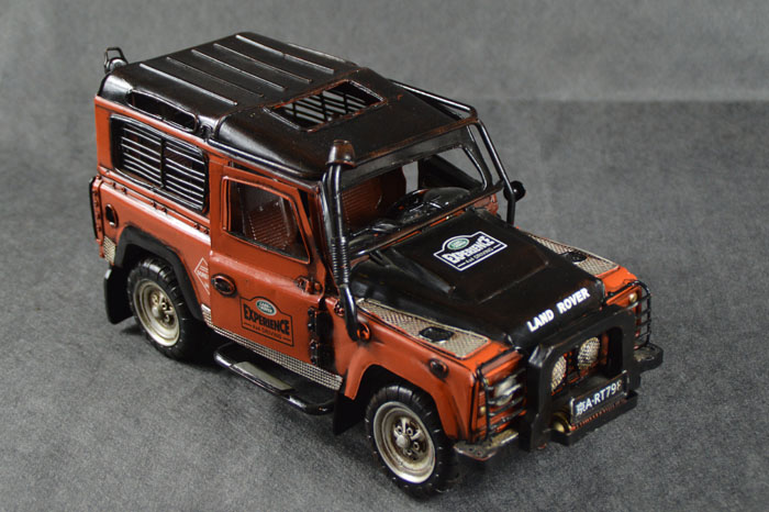 路虎卫士冰火限量版是2010年推出的车型,全球限量850台,中国地区限量200台。此模型是路虎卫士冰火限量改装版的精细制作版,模型的各个部分细节制作极为精细,车体的所有细节均全部制作出来,包括每一个栏杆、螺钉、喷涂的图案印字,及车内各部分结构均制作出来,两侧车门及后车门均可以打开,对车体喷涂进行了专业做旧处理,真实感非常强。是极为少有的限量版越野车超精细制作模型,极具收藏价值。 模型制作材料为马口铁,比例是1:12,模型长35cm,宽16cm,高17cm。